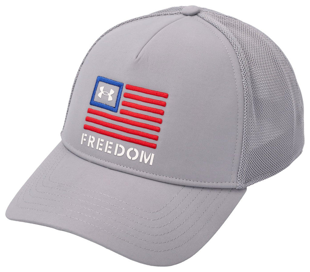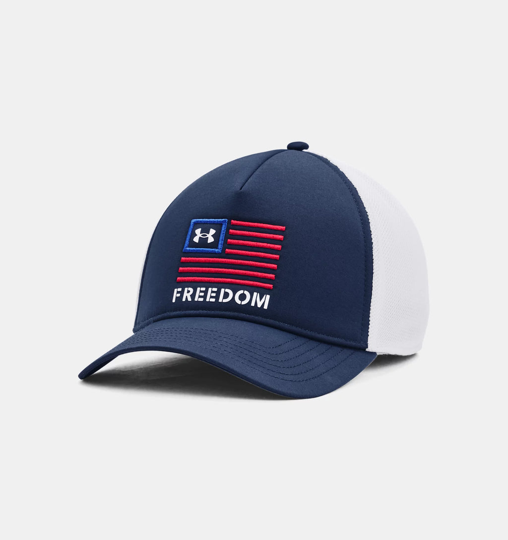 Suit up for any adventure with the Under Armour® Freedom Trucker Cap! Structured front panels create that classic trucker profile, and mesh back panels deliver comfortable breathability. Plus, a UA Siro sweatband wicks away moisture without sacrificing softness and stretch. UA Pro Fit incorporates a pre-curved visor, a slightly higher crown, and a structured front that maintains its shape. An adjustable snap-back closure provides a like-custom fit. Made of 100% polyester. One size fits most. Imported.